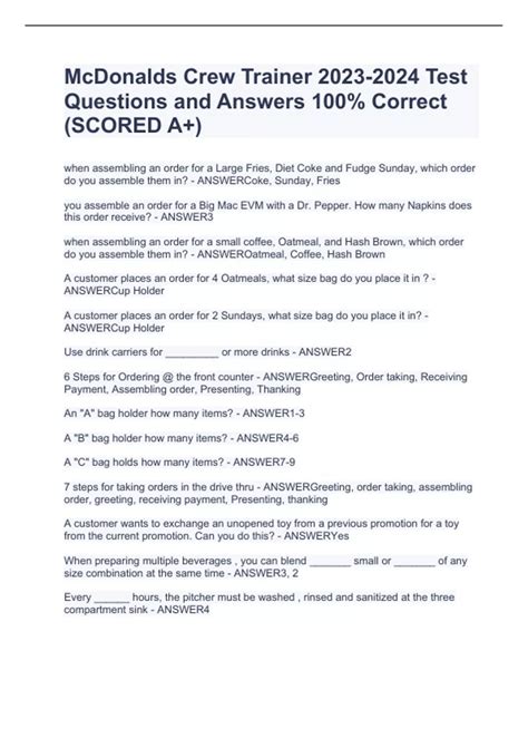 Read MCDONALDS SERVICE UNIT TEST ANSWERS Kindle Editon Open Library